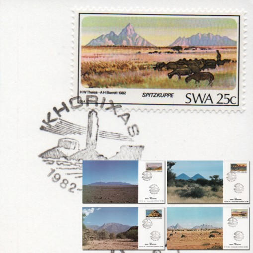 Seria na kartach maksimum, na znaczkach której przedstawiono następujące góry Afryki Południowo-Zachodniej: