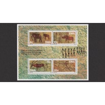 Seria w bloku, na znaczkach której widnieją prehistoryczne malowidła naskalne z terenów Namibii przedstawiające kolejno słonie, nosorożca, antylopę i myśliwego z łukiem.