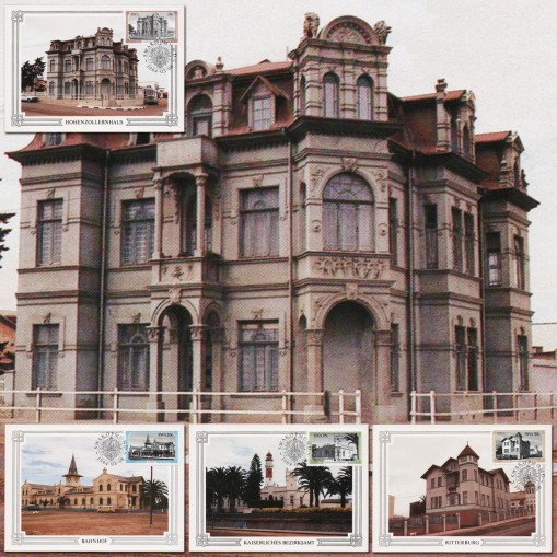 Seria na kartach maksimum, na znaczkach której przedstawiono historyczne niemieckie budynki w Swakopmund, mieście będącym głównym portem ówczesnej kolonii niemieckiej w Afryce: