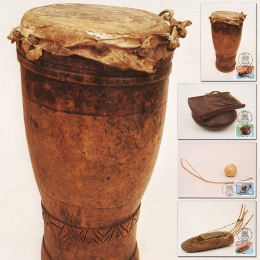 Seria na kartach maksimum, na znaczkach której widnieją następujące tradycyjne instrumenty muzyczne używane przez ludy zamieszkujące terytorium obecnej Namibii: