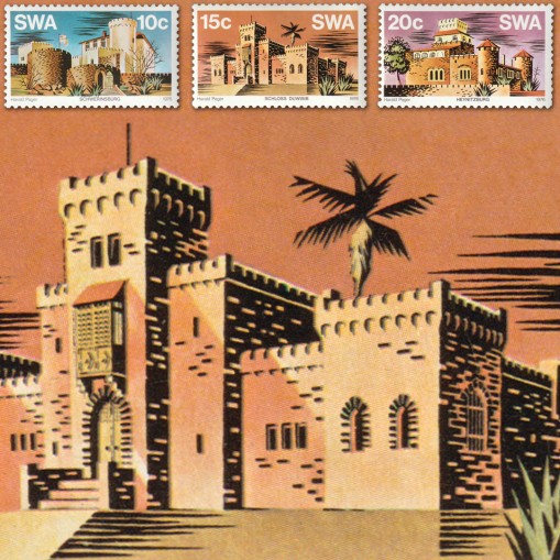 Na znaczkach widnieją zamki w Afryce Południowo-Zachodniej: