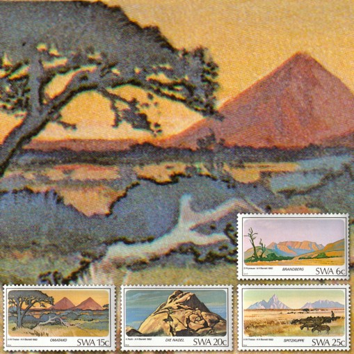 Na znaczkach przedstawiono góry Afryki Południowo-Zachodniej, kolejno:
