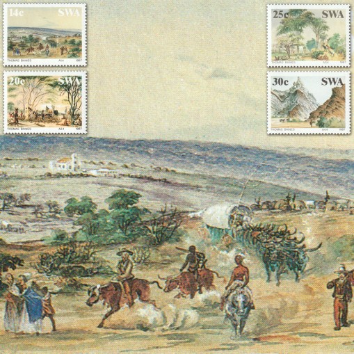 Na znaczkach przedstawiono historyczne obrazy namalowane ręką Thomasa Bainesa (1820-1875). Baines jest dziś najbardziej znany ze swoich szczegółowych obrazów i szkiców, które dają wyjątkowy wgląd w życie kolonialne w południowej Afryce i Australii.