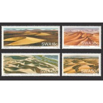 Na znaczkach przedstawiono zapierające dech w piersiach widoki z pustyni Namib i różne formacje wydm.