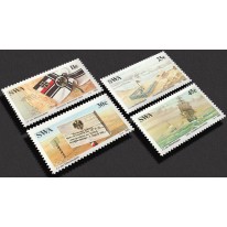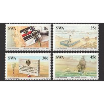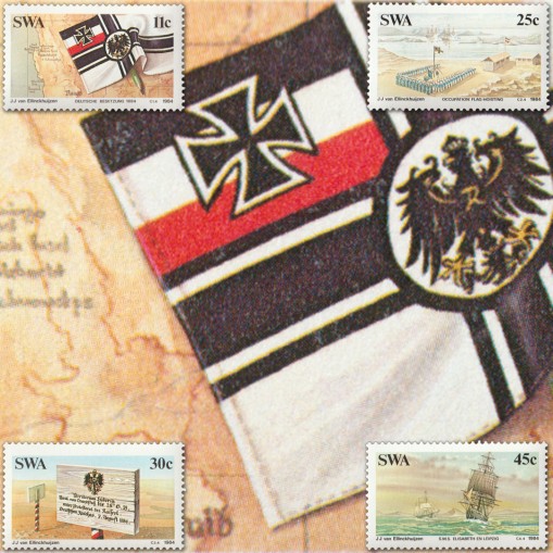 Na znaczkach widnieją sceny upamiętniające stulecie niemieckiej kolonizacji: