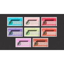 8 znaczków poczty lotniczej z 8 różnych krajów, wydanych w 1963 roku z okazji pierwszej rocznicy działalności linii lotniczych „Air Afrique” oraz wprowadzenia do floty samolotu pasażerskiego McDonnell Douglas DC-8.