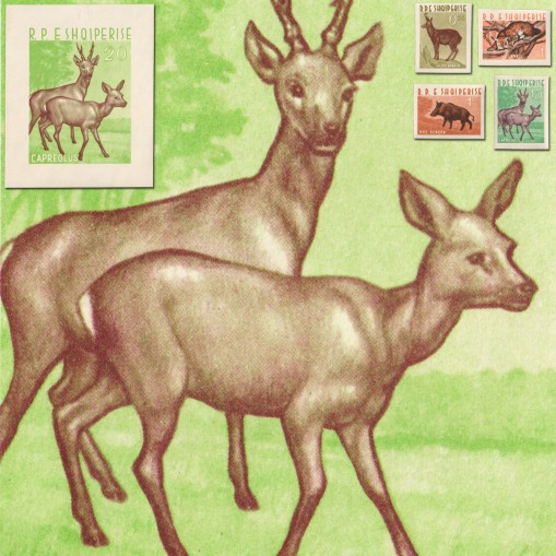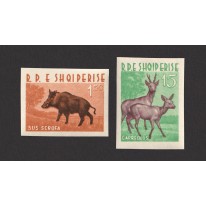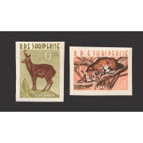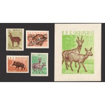 Znaczki i blok, na których widnieją następujące gatunki zwierząt występujące w Albanii: