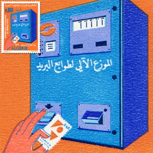 Znaczek przedstawia automat do sprzedaży znaczków, w tamtych latach innowację.