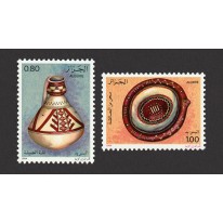 Na znaczkach widnieją algierskie wyroby ceramiczne, kolejno: dzban na wodę, talerz, lampa oliwna i garnek na mleko.