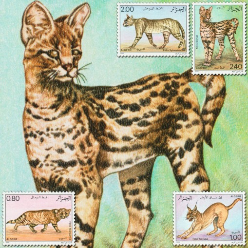 Na znaczkach widnieją gatunki z podrodziny kotów występujące dziko, kolejno: