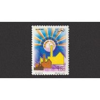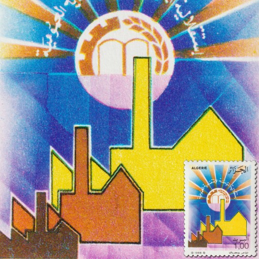Znaczek promujący gospodarczą niezależność zakładów państwowych w Algierii.