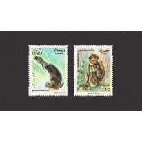Na znaczkach widnieją dwa gatunki ssaków występujących w Algierii: foka mniszka śródziemnomorska oraz makak berberyjski.