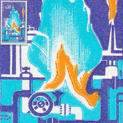 Znaczek wydany z okazji uruchomienia gazowni w mieście portowym Arzew w Algierii.
