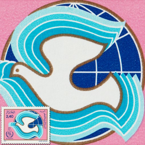 Znaczek wydany z okazji Międzynarodowego Roku Pokoju.