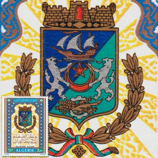 Znaczek upamiętniający tysięczną rocznicę założenia miasta Algieru.