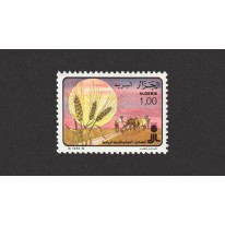 Na znaczku widnieją kłosy zboża oraz oranie pola wołami.