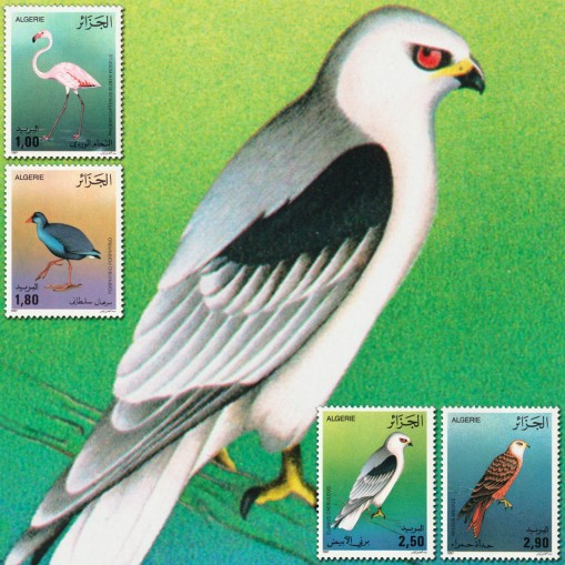 Na znaczkach widnieją następujące gatunki ptaków występujące w Algierii:
