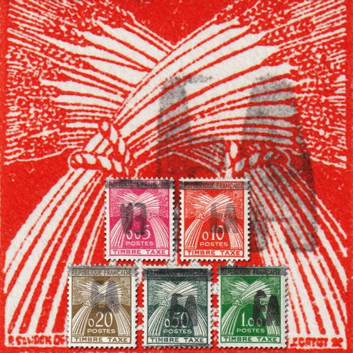 Na znaczkach widnieją dwa snopki zboża.