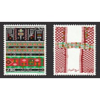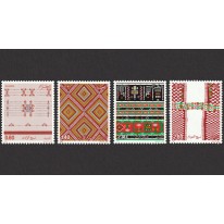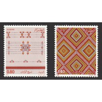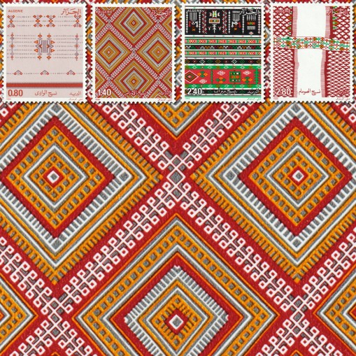 Na znaczkach widnieją wzorzyste arabskie tkaniny.