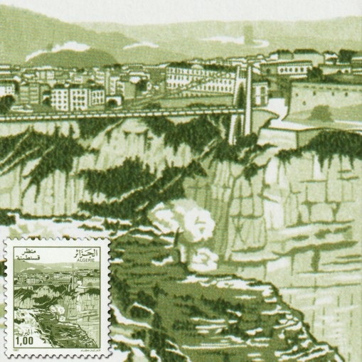 Znaczek obiegowy, na którym przedstawiono widok algierskiego miasta zwanego Konstantyną.