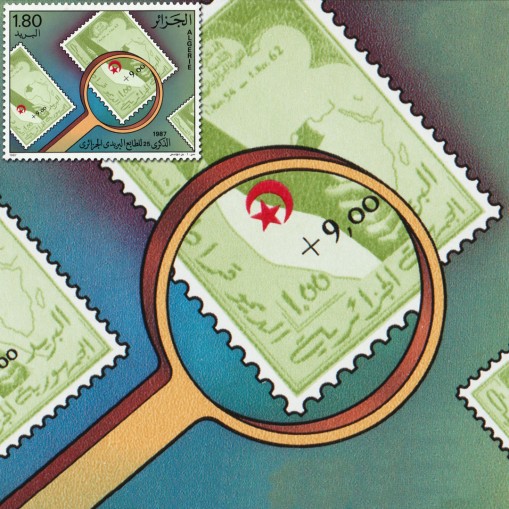 Znaczek upamiętniający 25. rocznicę wydawania znaczków w niepodległej Algierii.
