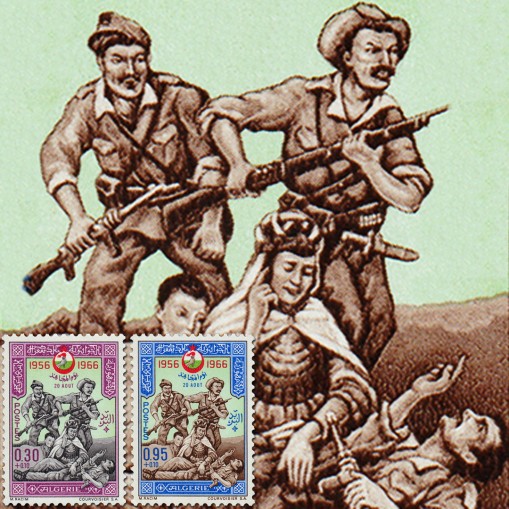 Na znaczkach przedstawiono bojowników i rannych Frontu Wyzwolenia Narodowego podczas wojny algierskiej.