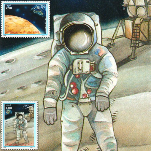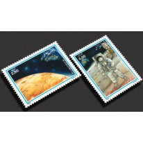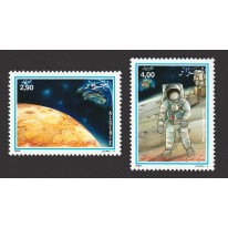 Znaczki upamiętniające 20. rocznicę lądowania człowieka na Księżycu. Przedstawiono na nich kolejno Księżyc widziany z kosmosu oraz astronautę na powierzchni Księżyca.