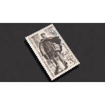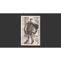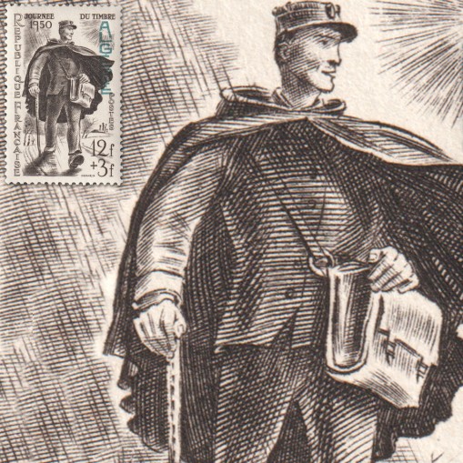 Znaczek upamiętniający Dzień Znaczka. Jest to walor francuski z nadrukiem "Algerie". Na znaczku przedstawiono listonosza.