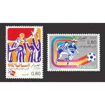 Ze względów finansowych Algieria wydawała krótkie serie znaczków o tematyce sportowej (dwa lub trzy znaczki w serii), zaś często pojedyncze znaczki z okazji danych zawodów sportowych.