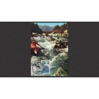 Na znaczku i karcie widnieje kajakarz na górskiej rzece.