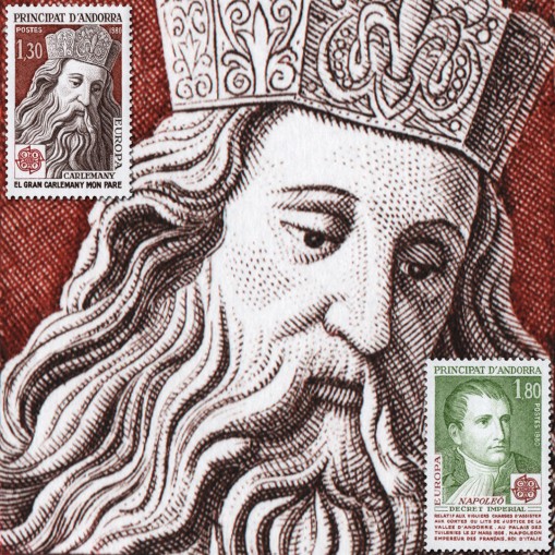 Na znaczkach widnieją Karol I Wielki i Napoleon Bonaparte.
