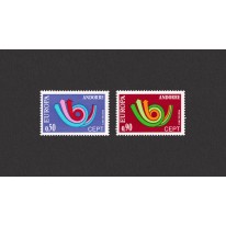 Emisja EUROPA CEPT, której znaczki mają rozpoznawalny wśród filatelistów dizajn trąbki pocztowej, będący projektem norweskiego grafika (Leif Frimann Anisdahl). Trąbka pocztowa jest utworzona z trzech strzałek, reprezentujących list, telegraf i telefon.