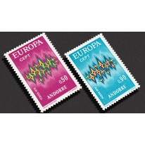 Projektantem emisji EUROPA z 1972 roku był artysta fiński Paavo Huovinen, zaś dizajn to znana filatelistom zorza polarna (Aurora borealis) - każdy przebłysk reprezentuje kraj członkowski wspólnej Europy. Dla ciekawości, Aurora (pol. jutrzenka, zorza) była w mitologii rzymskiej boginią zorzy porannej, brzasku i świtu (poranku). Była utożsamiana z grecką Eos.