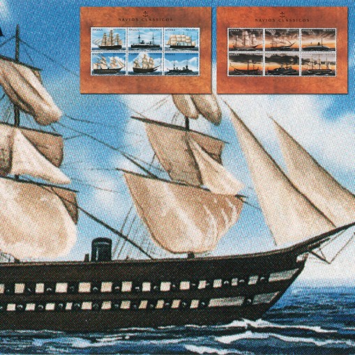 Seria w dwóch arkuszach, na znaczkach której widnieją następujące statki: