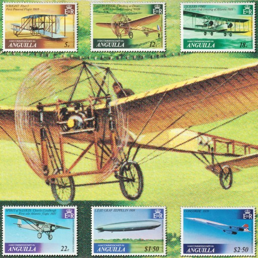 Znaczki upamiętniające 75. rocznicę pierwszego lotu samolotem napędzanym silnikiem spalinowym nazwanym „Wright Flyer” dokonanego przez braci Orville’a i Wilbura Wright.