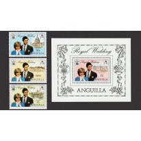 Znaczki i blok upamiętniające ślub księcia Karola i Diany Spencer.