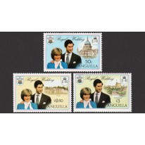 Na znaczkach widnieją nowożeńcy na tle następujących budynków: katedry św. Pawła w Londynie, wsi Althorp, zamku w Windsorze i pałacu Buckingham.