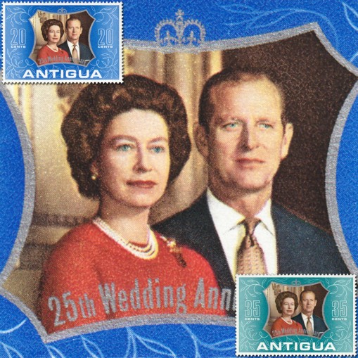 Znaczki wydane z okazji 25. rocznicy ślubu królowej Elżbiety II i księcia Filipa.