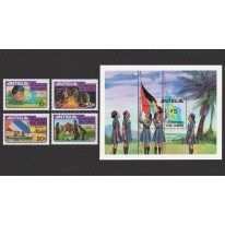 Znaczki i blok upamiętniające 50. rocznicę powstania ruchu harcerek (ang. Girl Guides) na Antigui.