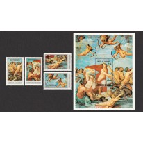 Znaczki i blok upamiętniające 500. rocznicę urodzin włoskiego malarza epoki renesansu Rafaela Santi.