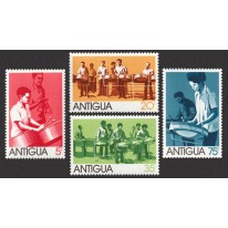 Na znaczkach widnieją bębniarze grający na wywodzącym się z karaibskich wysp Trynidad i Tobago instrumencie nazywanym steel pan lub steel drums. Kształtem przypomina on obcięte dno beczki. Instrument ma formę blaszanych bębnów posiadających szereg wgłębień, które umożliwiają wydobycie różnych dźwięków. Dźwięki wydobywa się uderzając pałeczkami.