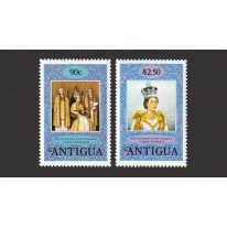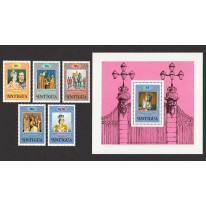 Znaczki i blok wydane z okazji 25. rocznicy koronacji królowej Elżbiety II.