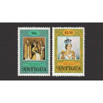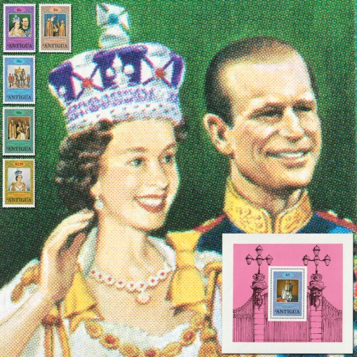 Znaczki i blok wydane z okazji 25. rocznicy koronacji królowej Elżbiety II.