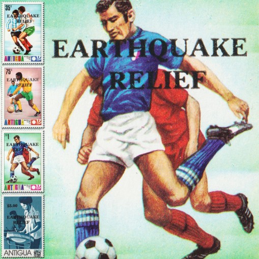 Znaczki wydane wcześniej tego samego roku z okazji mistrzostw świata w piłce nożnej rozegranych w Niemczech oraz karnawału na Karaibach (bębniarze), tym razem z nadrukami „EARTHQUAKE RELIEF” (pomoc poszkodowanym w trzęsieniu ziemi) i z przedrukiem nominału na ostatnim znaczku.