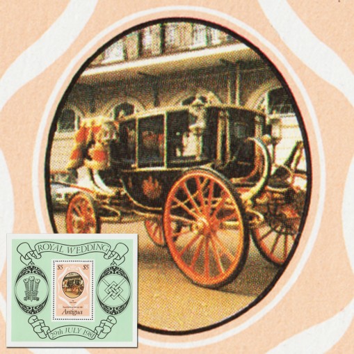 Znaczek w bloku upamiętniający ślub księcia Karola i Diany Spencer.