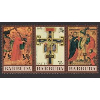 Na znaczkach widnieją obrazy z epoki średniowiecza znajdujące się w kolekcji Narodowej Galerii Sztuki w Londynie, kolejno: