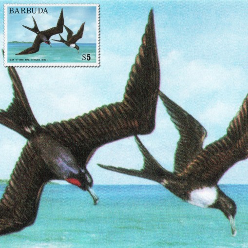 Znaczek z serii obiegowej, na którym widnieje fregata wielka.
