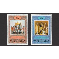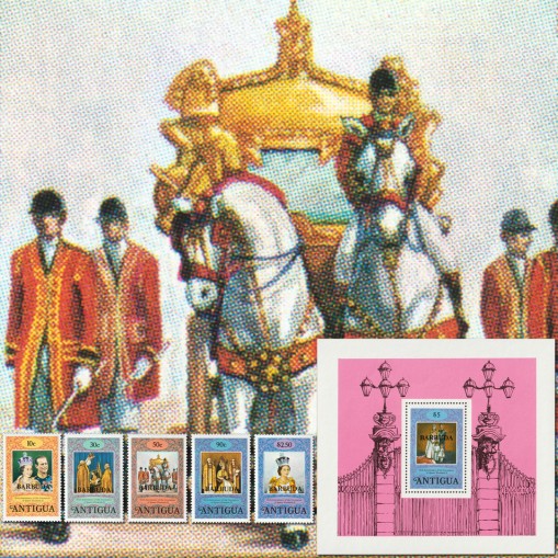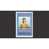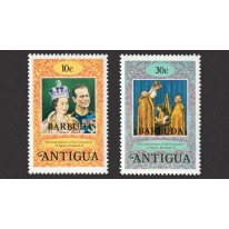 Znaczki i blok wydane pierwotnie dla Antigui z okazji 25. rocznicy koronacji królowej Elżbiety II, tym razem z nadrukami „Barbuda”.