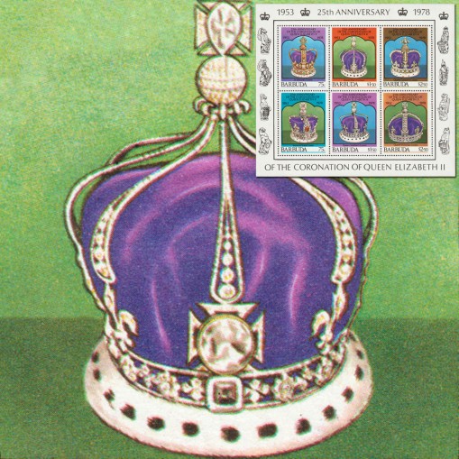Znaczki w bloku wydane z okazji 25. rocznicy koronacji królowej Elżbiety II.