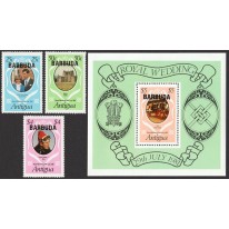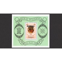 Znaczki i blok wydane pierwotnie dla Antigui z okazji podróży poślubnej Diany Spencer i księcia Karola, tym razem z nadrukami „Barbuda”.